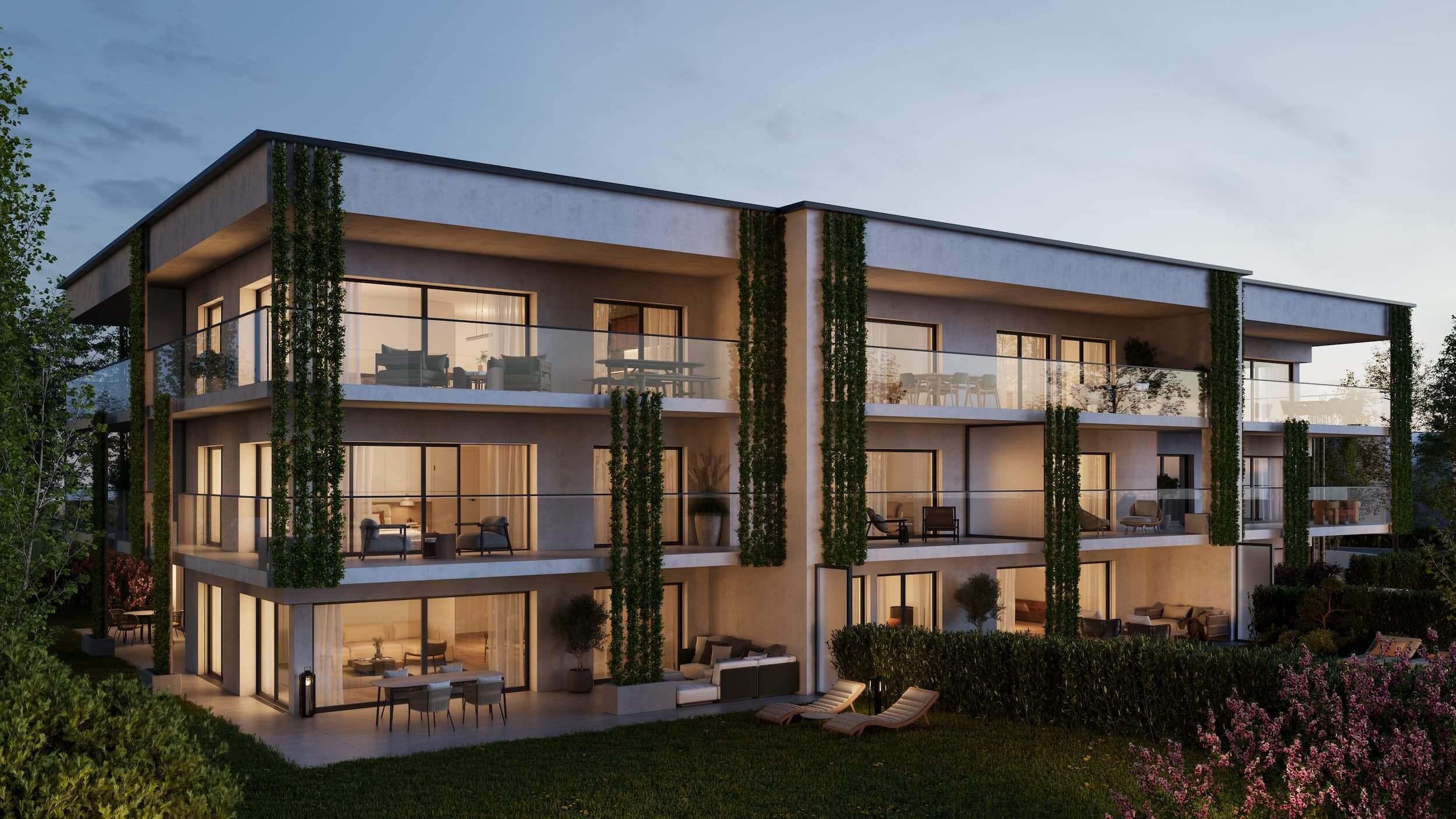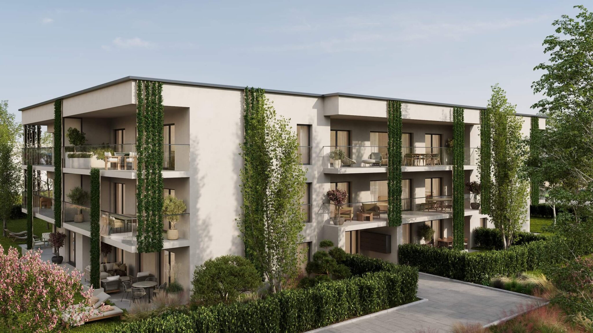 Chaque logement bénéficie d’un espace extérieur privatif, terrasse ou jardin pour profiter pleinement des beaux jours. L’architecture contemporaine, aux lignes épurées et aux garde-corps en verre, confère à la résidence une allure élégante et intemporelle, tout en garantissant une intimité préservée. Les résidents disposent également d’un parking en sous-sol, assurant confort et praticité.